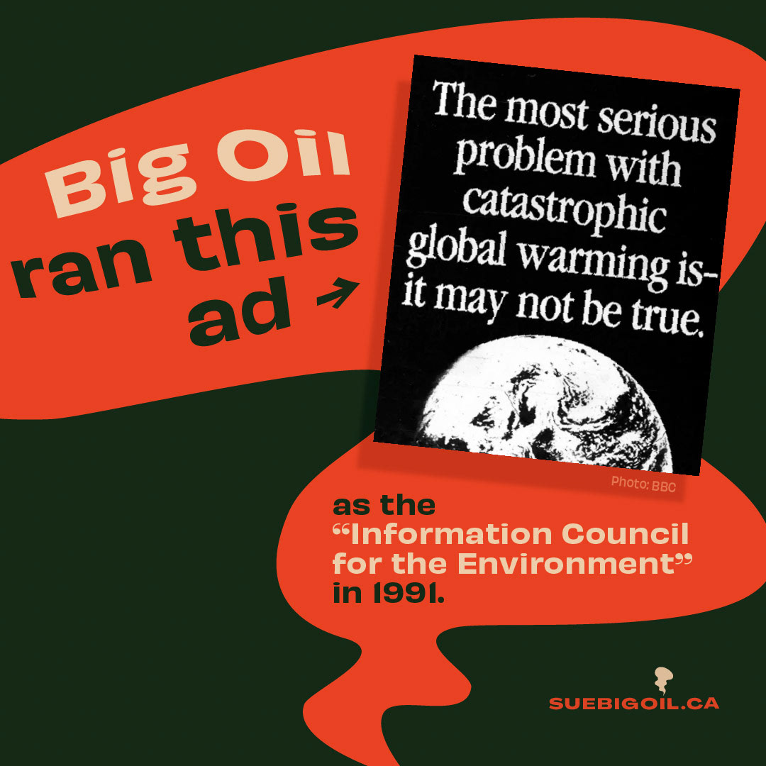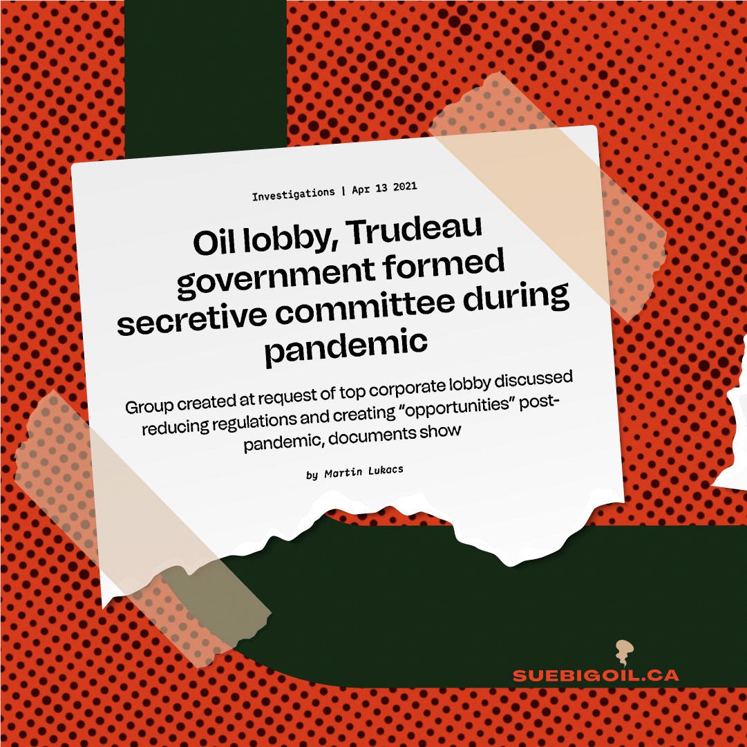 Working with the Sue Big Oil campaign's branding, I produced a series of social media graphics and short videos for filmmaker and climate activist Avi Lewis. I posted the images alongside copy Avi and I wrote together for his large social media audiences on Twitter and Instagram.